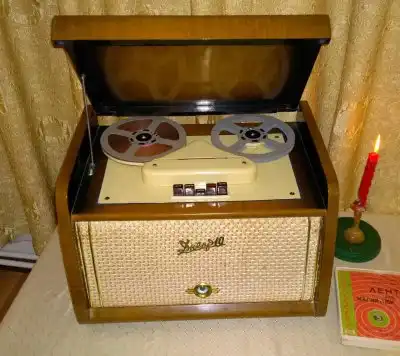 Магнитофон всегда привлекал внимание гостей, и был не менее важен, чем праздничный стол. А разве можно было пройти мимо него не остановившись?! Лакированный, с золотыми металлическими вставками-полосами на лицевой стороне, с металлической резной надписью Днепр-10, и лампой "глазком" в нижней части панели. О, эта лампа казалась мне какой то магической. При включении магнитофона лампа набирала мощность и медленно, от центра по окружности, загоралась красивым зелёным цветом, и так же медленно гасла при выключении. Он был ламповый, и когда лампы разогревались, от него начинал исходить особый запах, что то смешанное с лаком и канифолем. Катушки с советскими песнями чередовались с Битлами и Роллингами, а песня Роя Орбисона "pretty woman" заводила с первых аккордов .