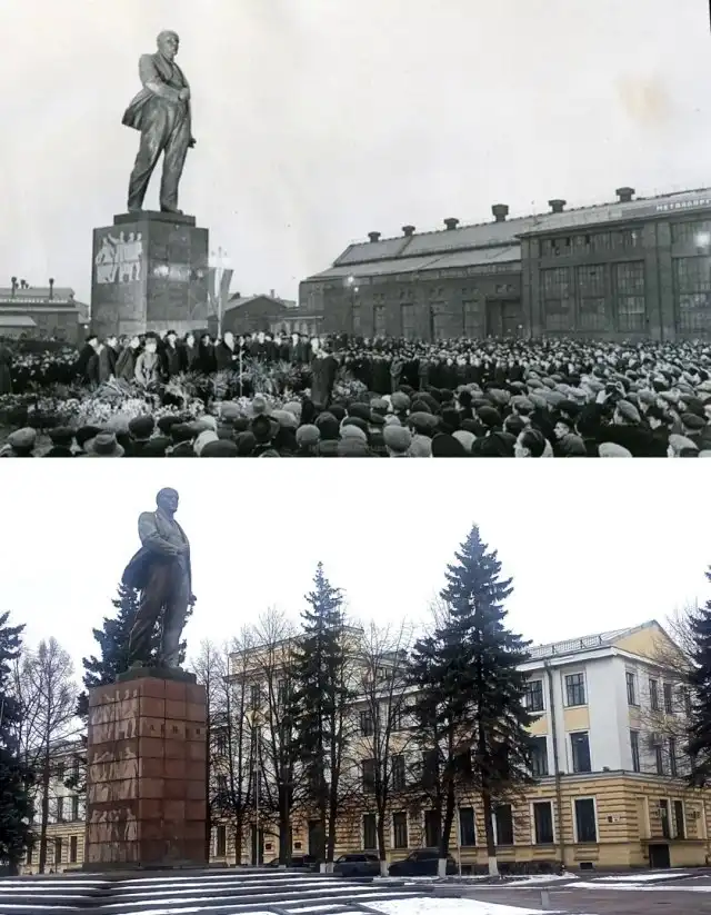 Открытие памятника В.И.Ленину на Кировском заводе. 5.11.1957 г./ 2021 г.