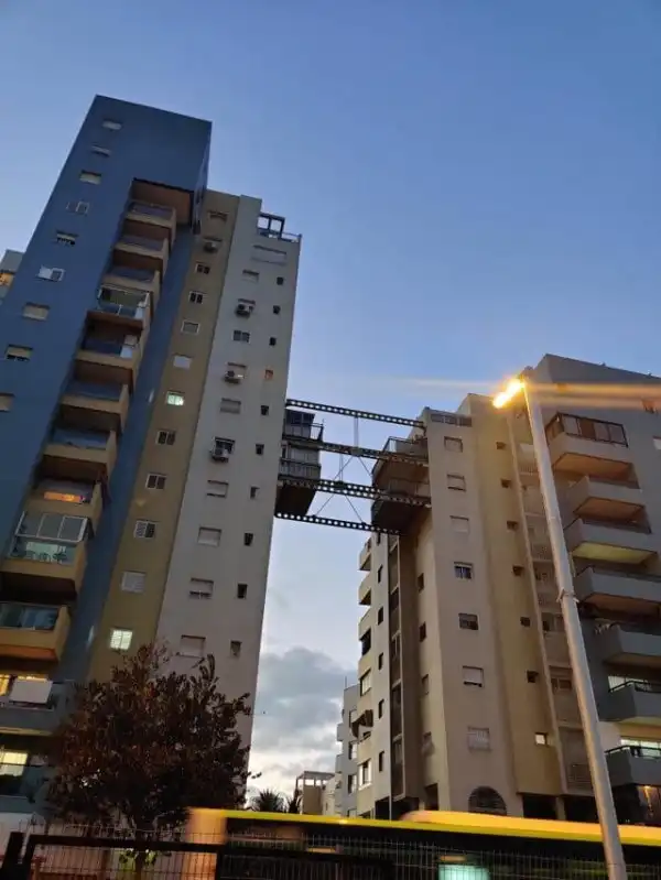 Ответ: Это должна была быть переходная галерея между двумя зданиями, но что-то пошло не так, и на её месте построили балконы.
