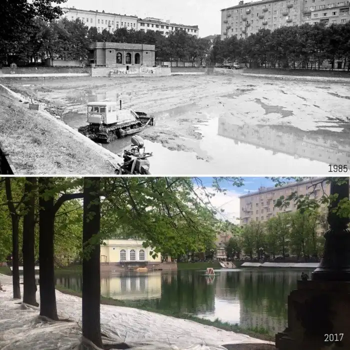 «Патрики», пруд без воды и наполненный)