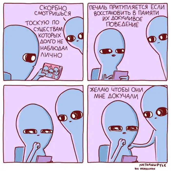 Предлагаю подборку комиксов о маленьких голубых инопланетянах, которые пытаются жить как люди.