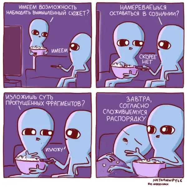 Конечно, это лишь домыслы, и мы не знаем, как они выглядят на самом деле, но американский художник Нэйтан Пайл представляет их себе как голубых человечков, которые пытаются жить также, как люди.