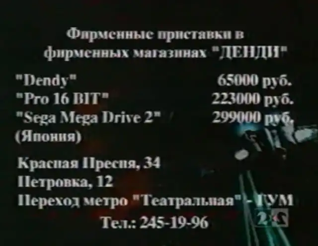 Цены на приставки в фирменных магазинах ''ДЕНДИ'', начало 90-х