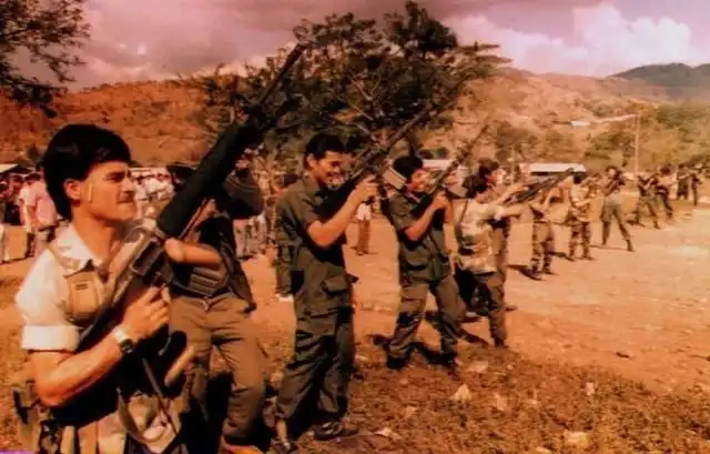 Сальвадорские партизаны разряжают оружие стреляя, для сдачи и уничтожения его под контролем ООН, 14 декабря 1992 года.