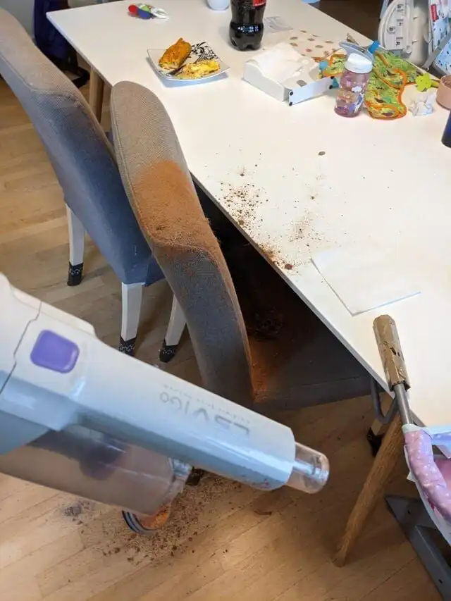 Я рассыпала какао на пол и пропылесосила, а потом снова рассыпала его на стол и стул, но уже из мусорного ведра