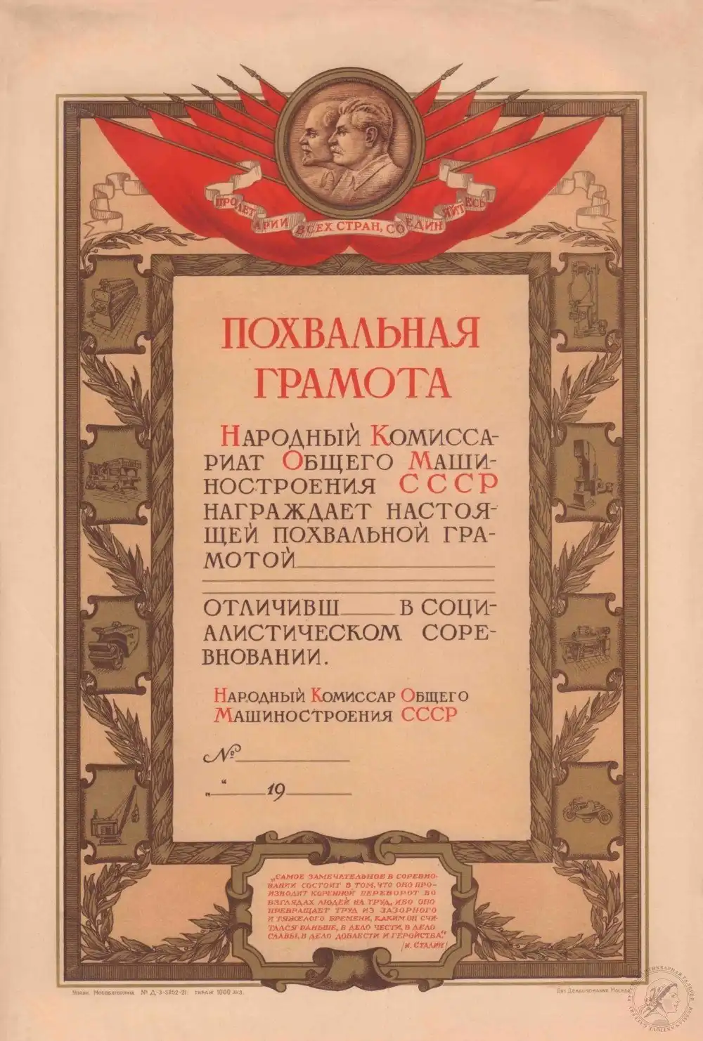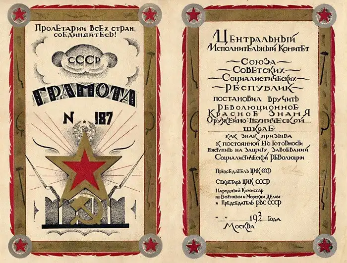 Конечно же подобная идея похвалы не могла остаться в стороне и большевики ее переняли, переделали херувимов и вензеля в красные флаги и звезды, переименовали в грамоты и благодарности и с радостью раздавали всем подряд.