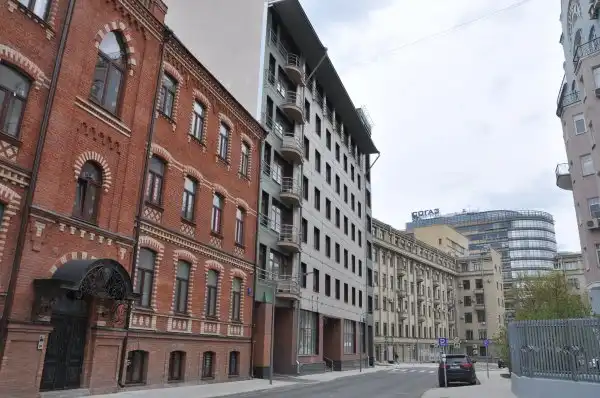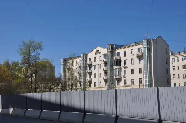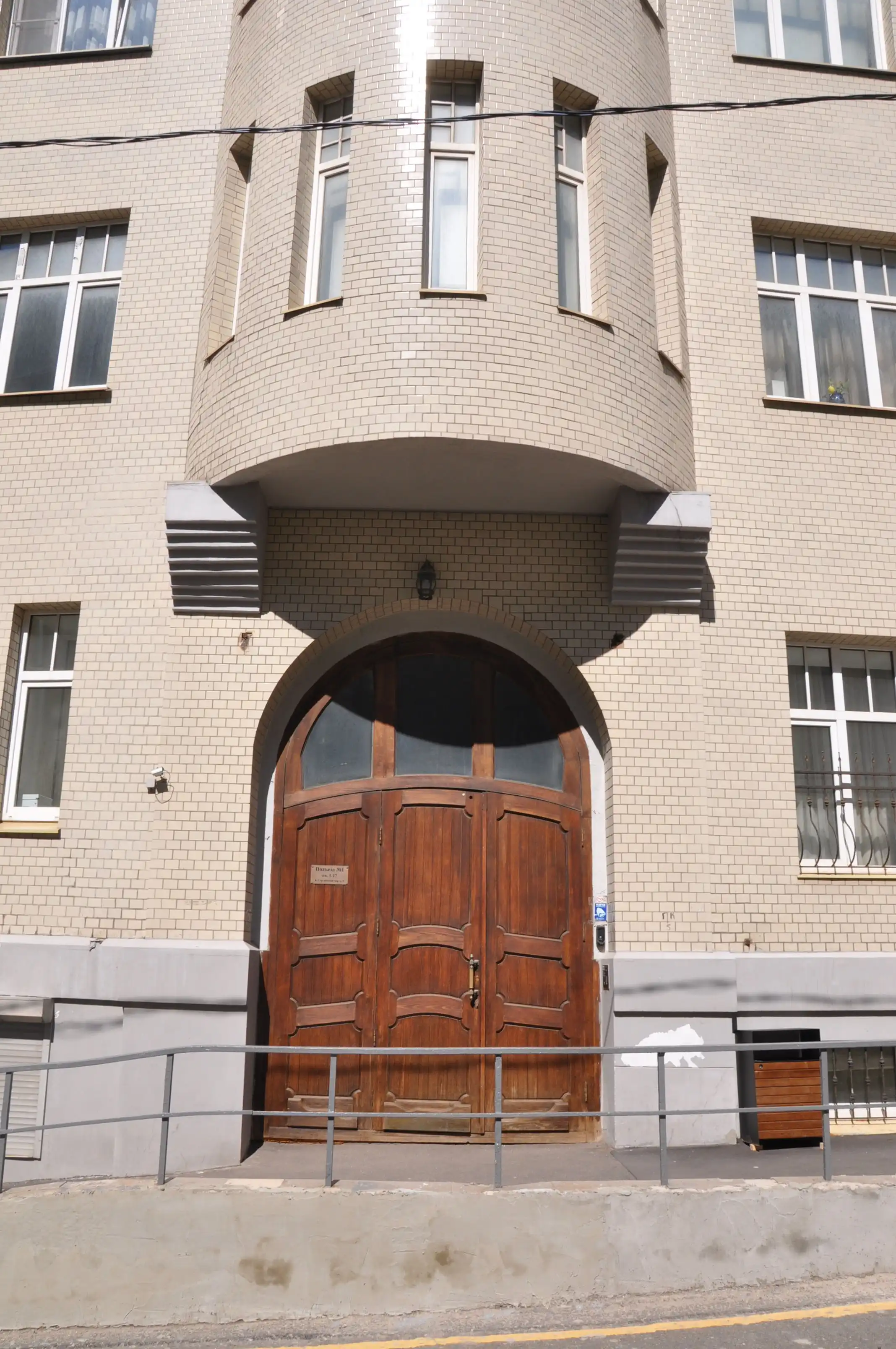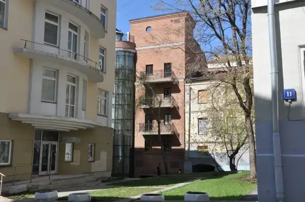 А вот здесь, на месте строящегося здания, стоял четырёхэтажный дом из красного кирпича. Здесь я родился и прожил первые 18 лет жизни.