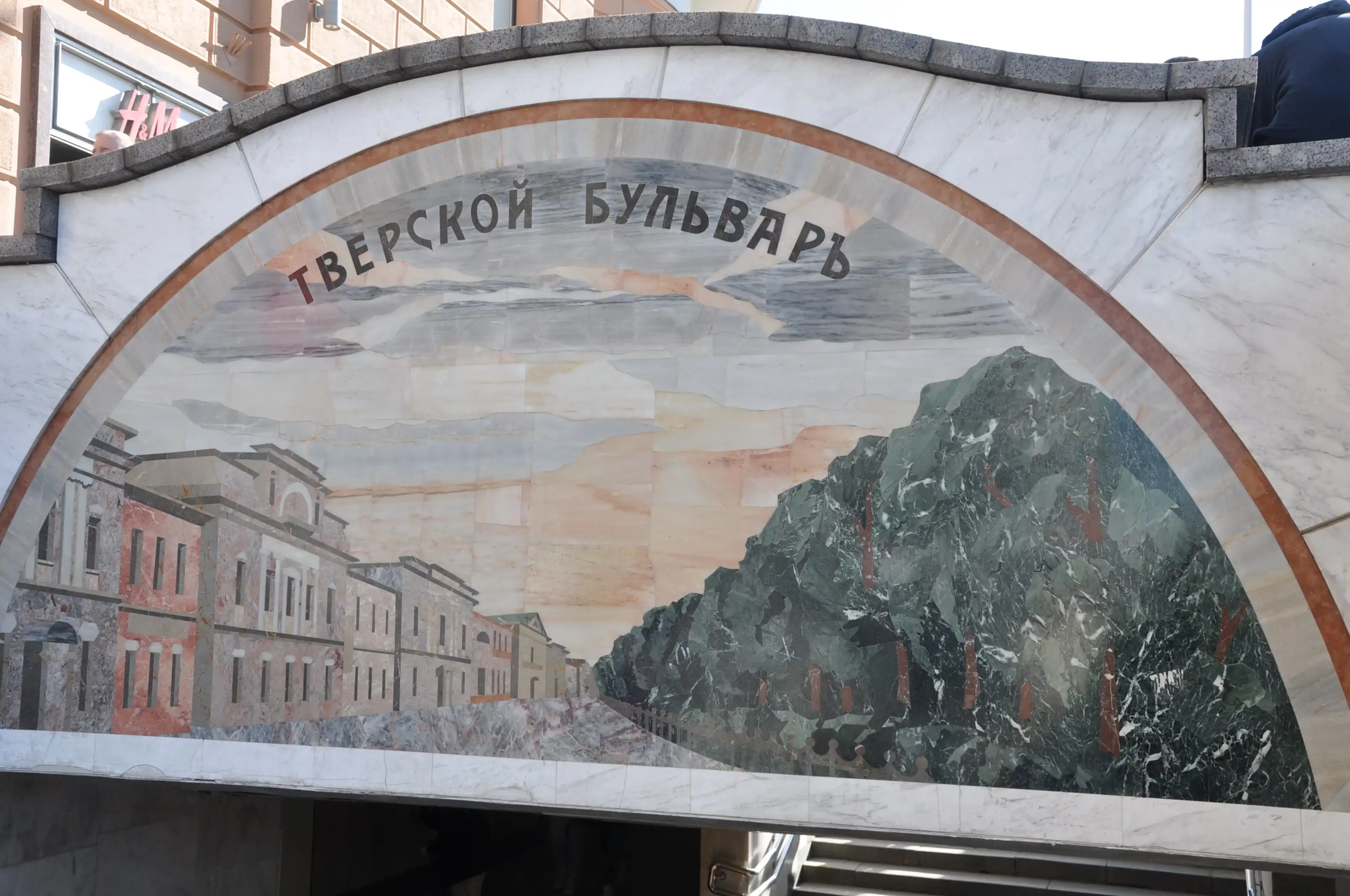 Входы в метро оформлены в виде мозаики на открывающиеся в старину виды…