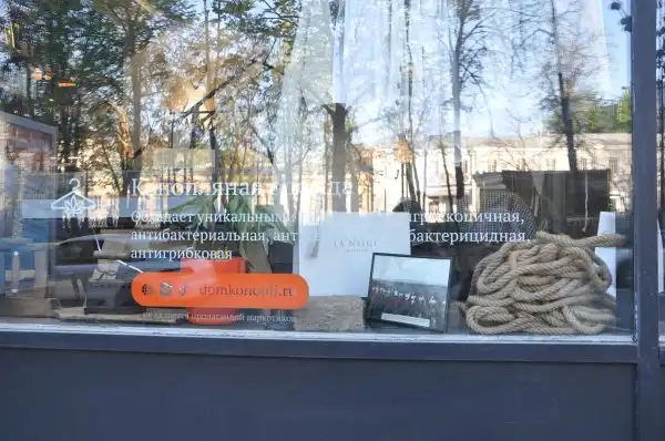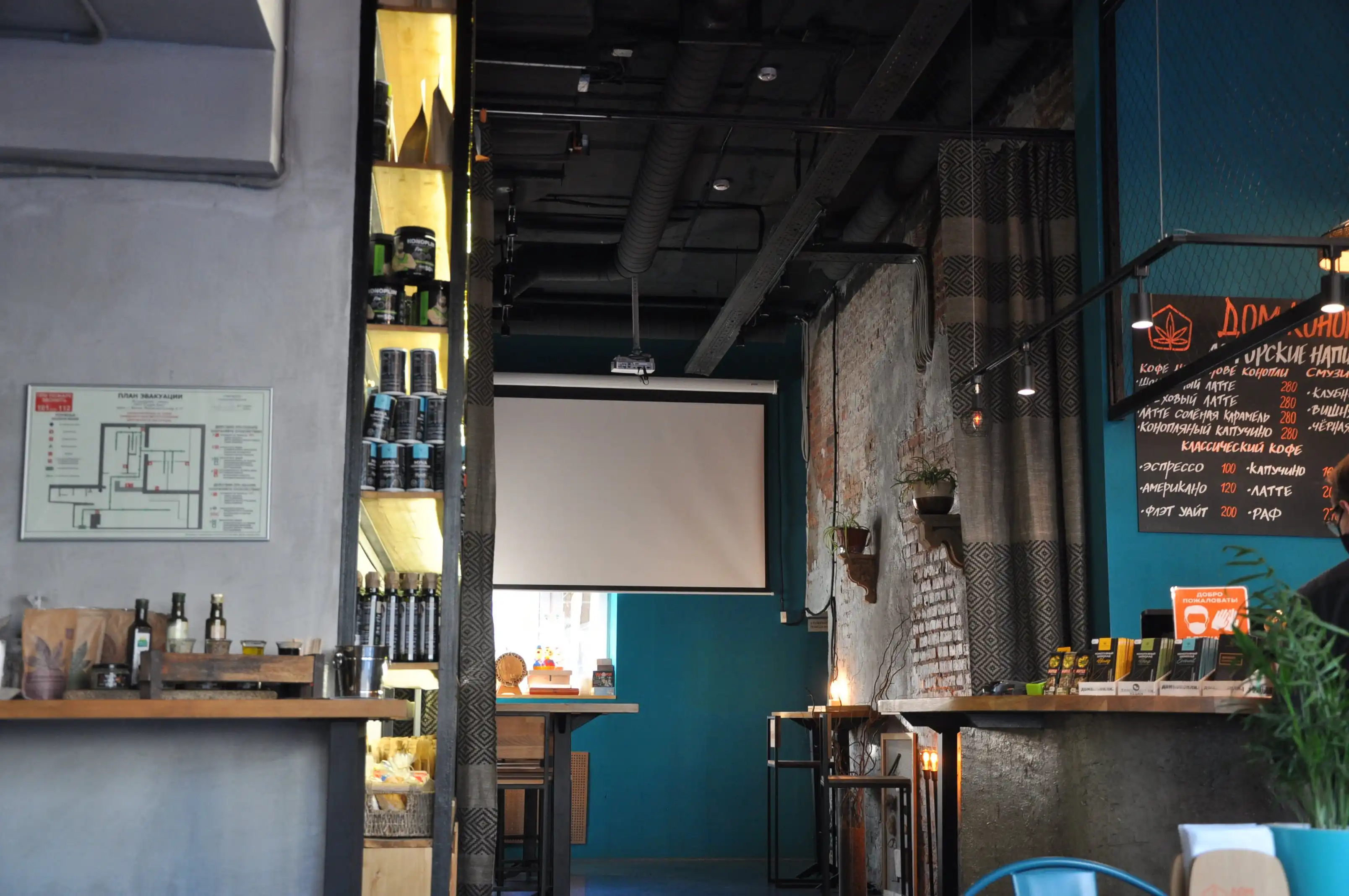 Два кусочка торта из конопляной муки, печенья с семенами конопли, два капучино на конопляном молоке… Атмосферно. Рядом продаются изделия из конопли.
