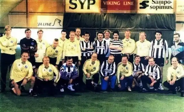 Владимир Путин в футбольной команде петербургской мэрии после матча с коллегами из мэрии финского города Турку, 1992 год.