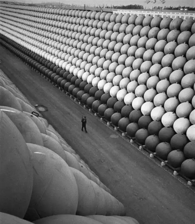Склад металлических буев, которые поддерживали противолодочные сети во время Второй Мировой. 1953 год.