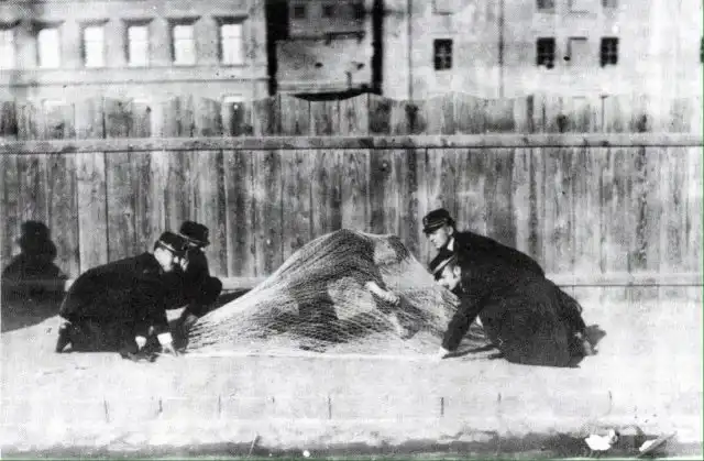 Медработники отрабатывают технику ловли буйных сумасшедших. Венгрия, 1903 год.