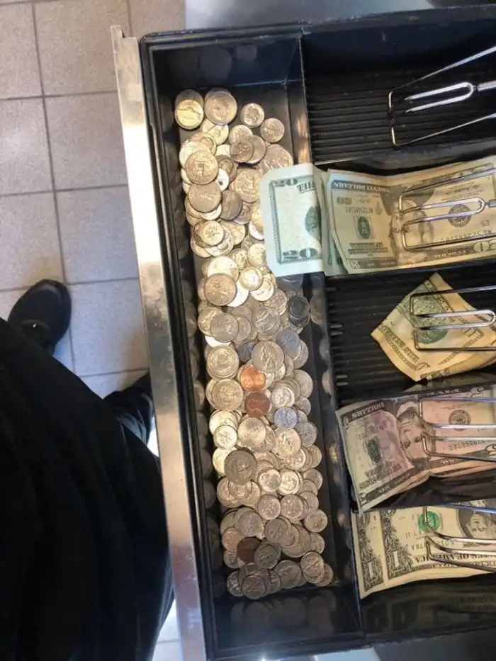 «Клиент оплатил заказ мелочью. $ 27 четвертаками, монетами в 5 и 10 центов»