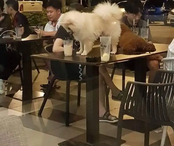 Наверное, ресторанный столик — это не лучшая лежанка для собаки