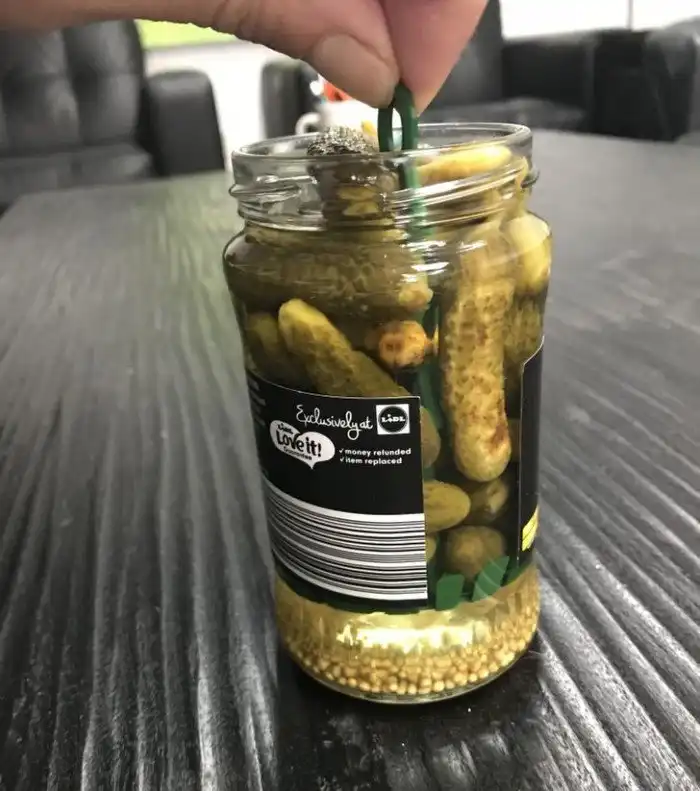 7. А в этой банке с огурчиками есть специальное подъемное приспособление, чтобы их было проще доставать