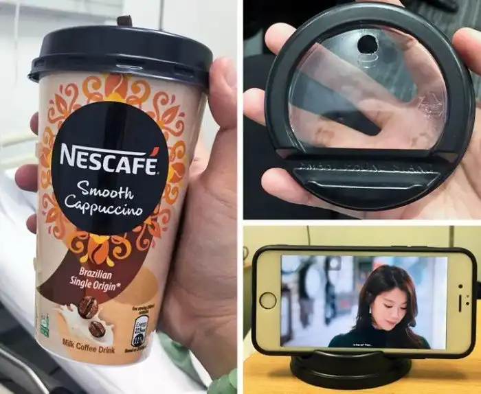 23. Эту крышку от стакана можно использовать в качестве подставки для смартфона, чтобы ваш кофе-брейк прошел еще приятнее