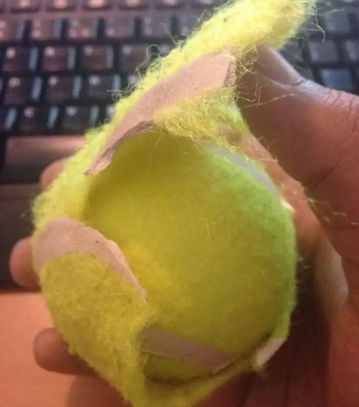 Теннисный мяч порвался, а внутри оказался мяч поменьше