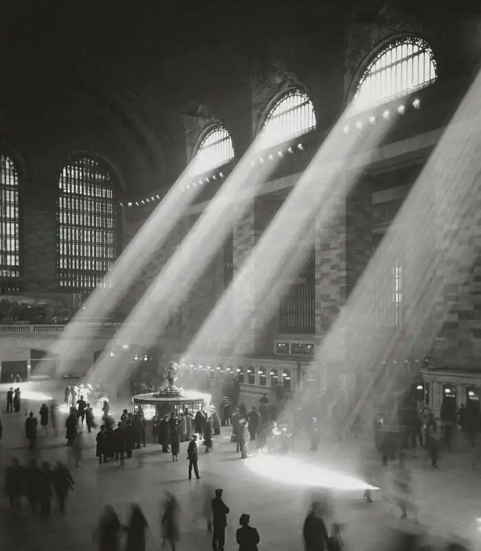 14. Центральный вокзал Нью-Йорка, 1929 год. Сейчас таких лучей уже не может быть, поскольку вокзал окружают высотные здания