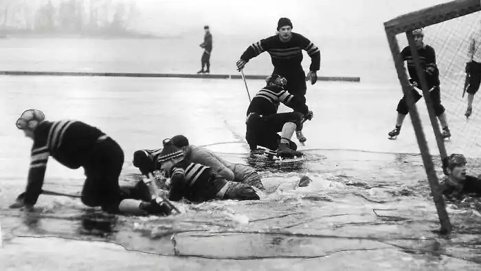 34. Хоккейный матч на открытом воздухе в Швеции, который пришлось срочно прервать. 1959 г.
