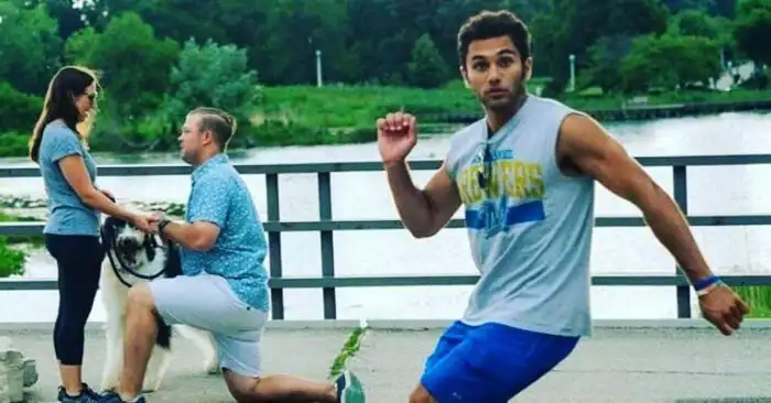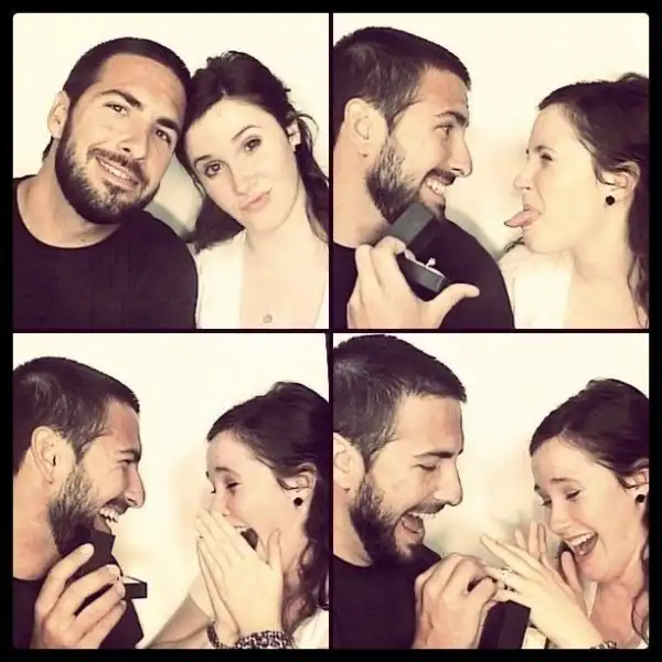 Профессиональные спортсмены Эди Окоро и Кэлли Рид встречались несколько лет, и вскоре Эди понял, что хочет сделать предложение. Но он решил сделать это креативно. В течение месяца он делал селфи с помолвочным кольцом, пока его девушка ничего не видит. Потом он показал ей коллекцию этих фото, и сделал настоящее предложение.