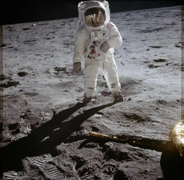 9. Американский астронавт Эдвин (Базз) Олдрин на поверхности Луны, июль 1969 года.
