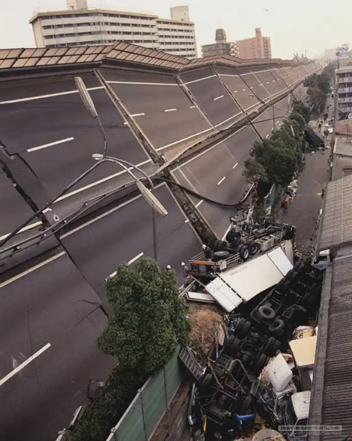 Шоссе в Кобе, Япония, после Великого землетрясения Хансин, 17 января 1995 год.