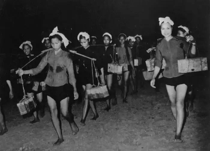 29. Девушки из партизанского отряда Вьетконга, переносящие боеприпасы по тропе Хо Ши Мина. Вьетнам. 2 января 1968 г. Вьетнамская война.