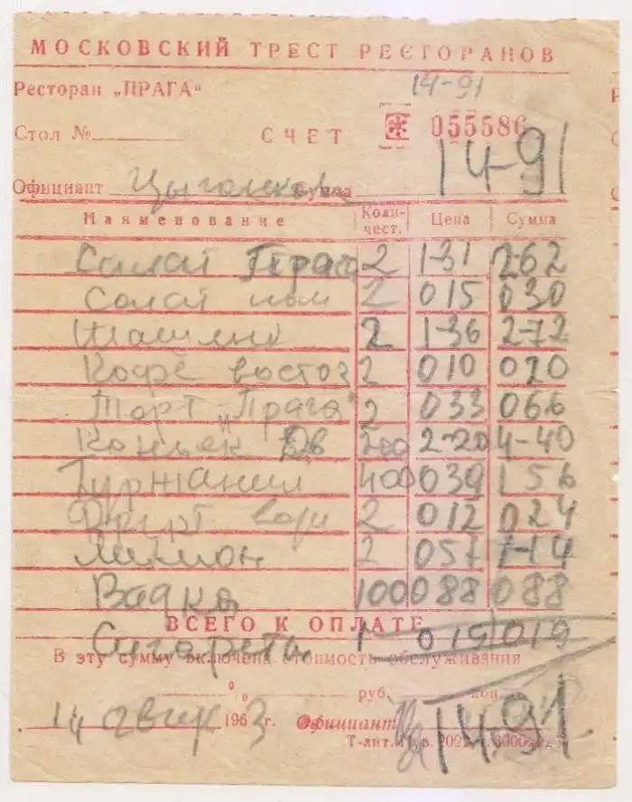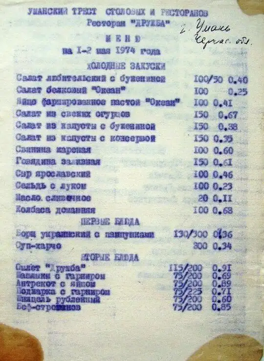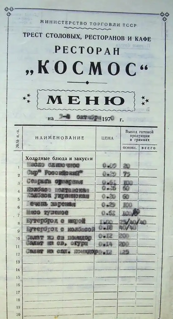 Просто любопытная сторона нашей прошлой жизни - ресторан. Место, где отмечали знаменательные события, где люди встречались, расставались, гуляли и отдыхали. И посетить его мог любой, ибо сумма за гулянку была не столь значительно для всех слове населения. Вспомним советские цены и сравним с сегодняшним днем