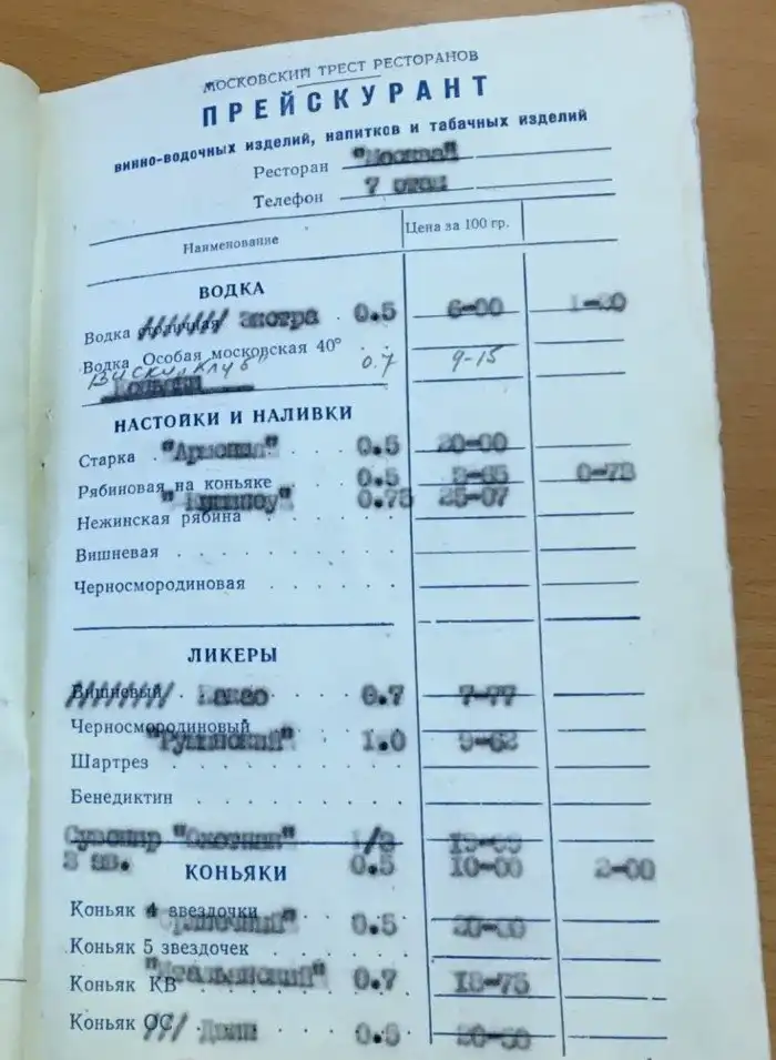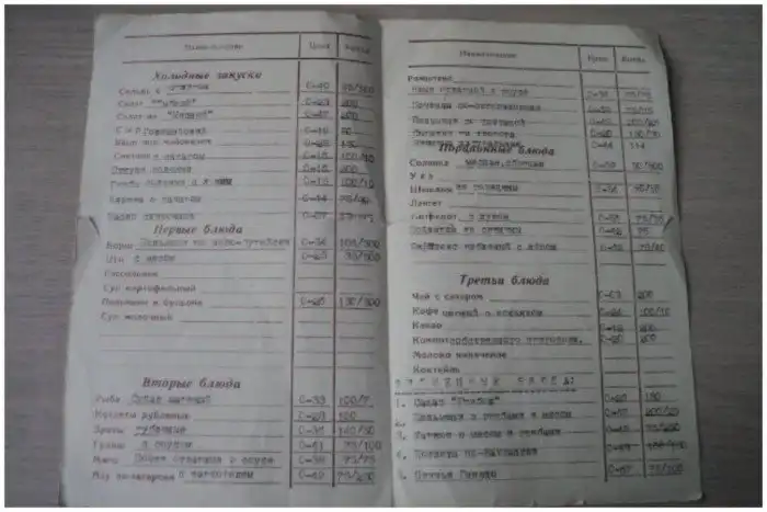 Меню ресторана при «Аэровокзале» на Соколе.