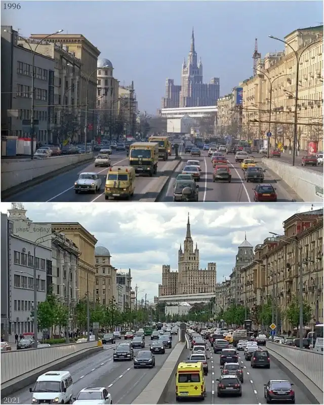 Историки говорят, что Москва сильно изменилась за время правления Лужкова. Мол, снесли большинство исторических зданий и на их месте построили новодел. Я не москвич, не мне судить, но давайте сравним ретро-кадры и современные фотографии.