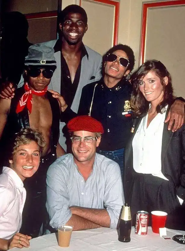 24. Рэнди Джексон, Мэджик Джонсон, Майкл Джексон, Марго Киддер, Татум О'Нил и Дэн Эйкройд, 1982 г.