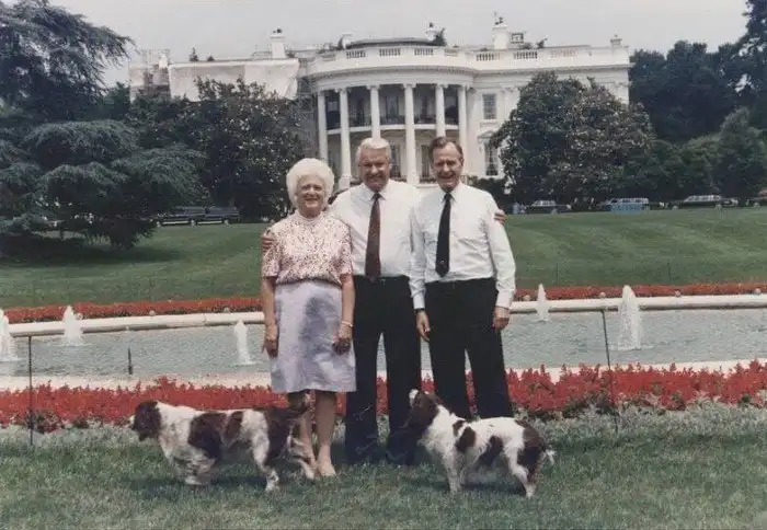 36. Борис Ельцин и Джордж Буш-старший на территории Белого дома, 1992 год.