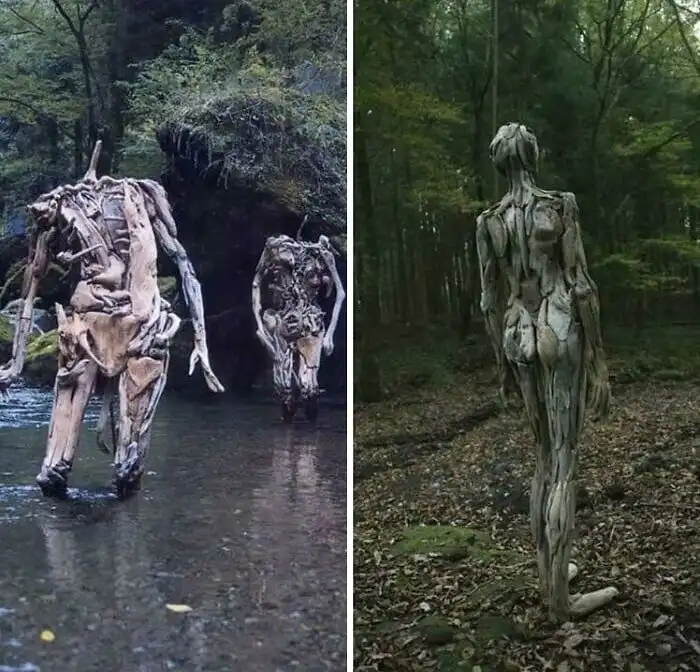 Японский художник Нагато Ивасаки делает пугающие лесные скульптуры