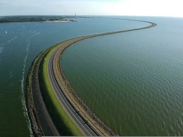 11. Вид на 30-километровую плотину Хаутрибдейк в Нидерландах