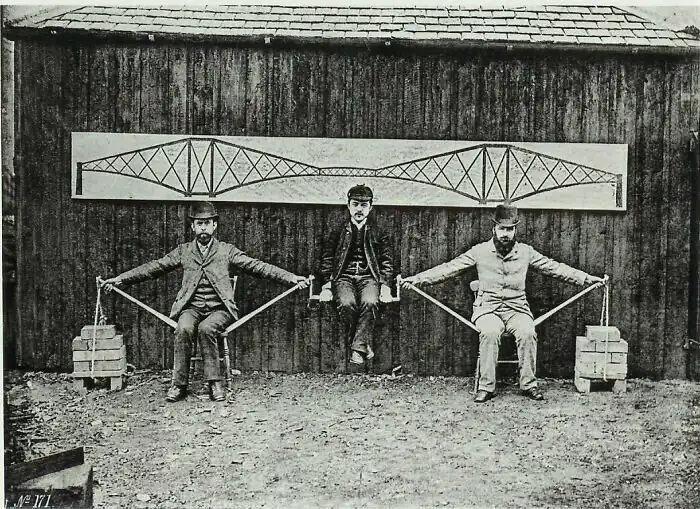 23. Инженеры-проектировщики демонстрируют консольные конструкции моста Форт-Бридж в Шотландии, 1887 г.