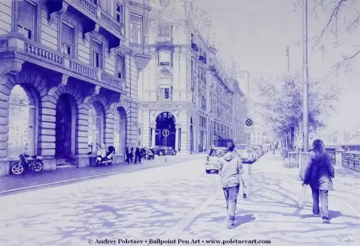 Андрей Полетаев – один из первопроходцев и провидцев направления Ballpoint Pen Art (искусство рисования шариковой ручкой). Его любовь к уличной жизни и её изображению быстро стала законодателем мод в области рисованных городских пейзажей. Непревзойденное техническое совершенство и внимание к деталям однозначно выделяют его из общей массы художников популярного направления.
