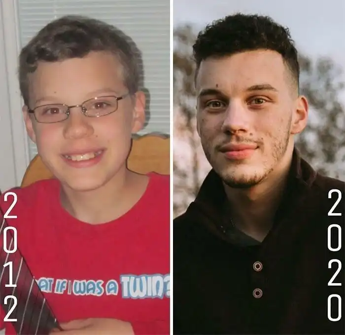 2. 18 лет и 23 года. Похудел и начал ухаживать за собой