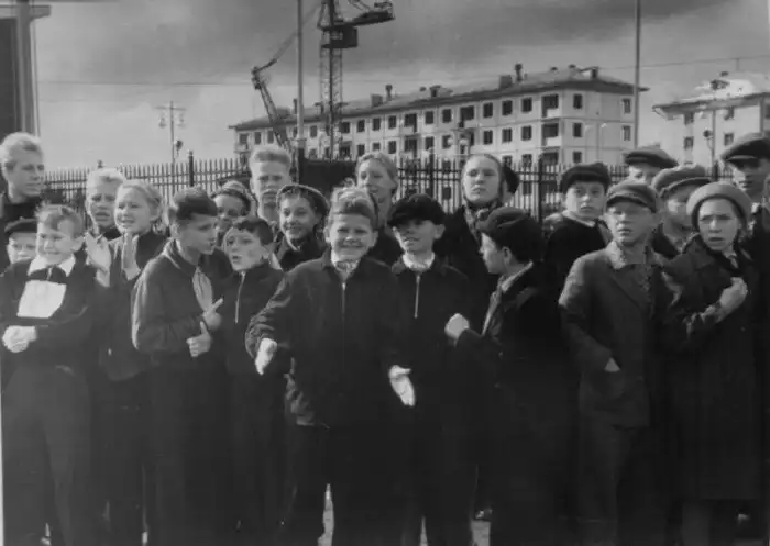 «На празднике школьника: болельщики». С. Антонов, 1961 год, г. Череповец, Бульварная ул