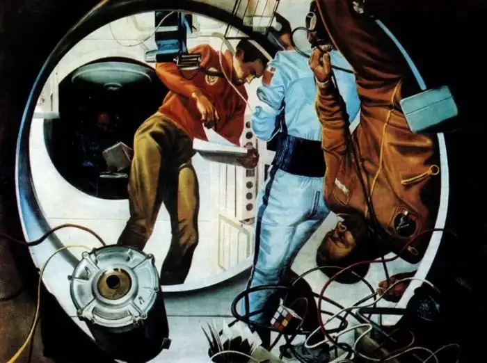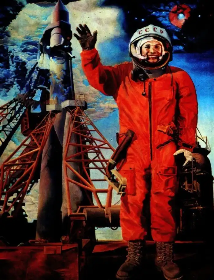 У нас под рукой есть очень много предметов, достижений техники и просто возможностей, которых не было у наших ровесников 60 лет назад. Но кое-чего, что было у них, у нас нет — всеобщая одержимость (в хорошем смысле) идеей освоения космоса. У нас нет машины времени или какой-то специализированной аппаратуры по передаче чувств, чтобы перенести вас в то время, но вот смелые идеи с картин художников того времени до наших дней дошли.