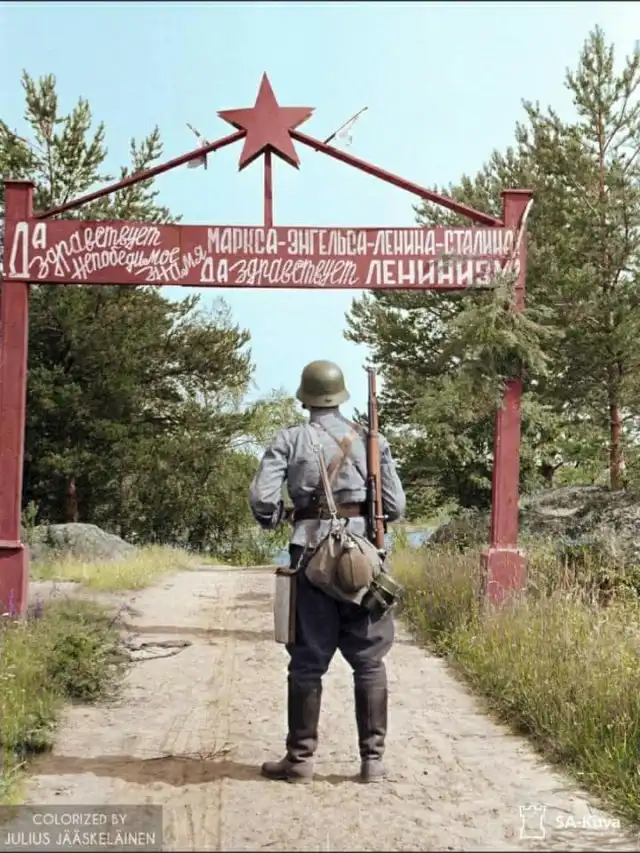 Финский солдат знакомится с местными достопримечательностями. Ладога. Лето 1941 года.