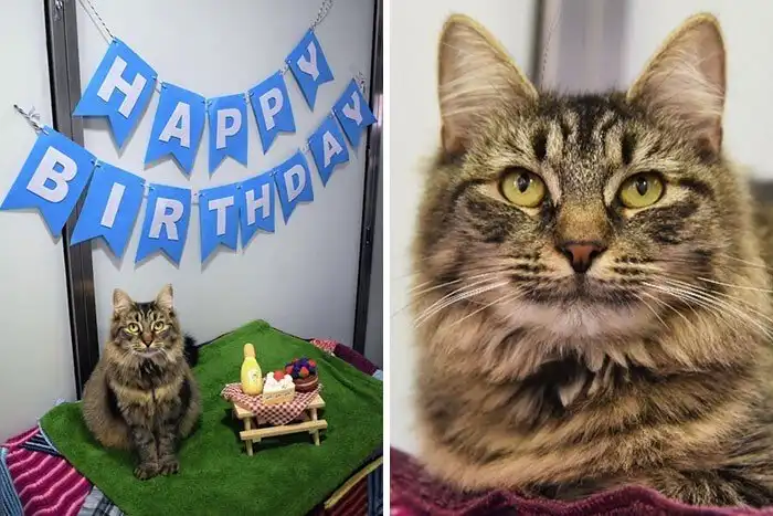 Приют решил устроить кошке Монике день рождения, надеясь найти ей хозяев. Но на праздник никто не пришел