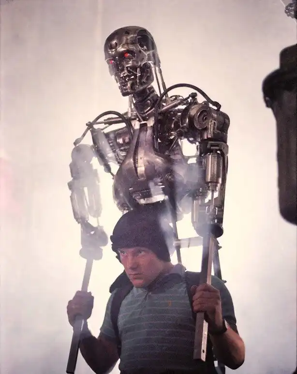 6. Модель Т–800 на съёмках фильма "Терминатор", 1984 год, США