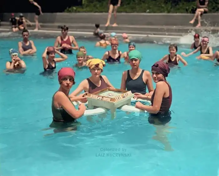 24. Четыре девушки играют в маджонг в бассейне, Вашингтон, округ Колумбия. 1924 г.
