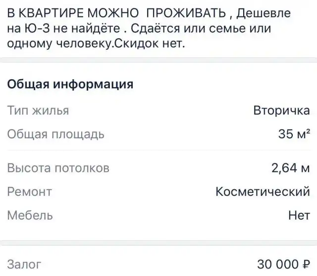 В Москве за 30 тысяч рублей и строго без скидок сдают однушку, в которой «можно проживать»