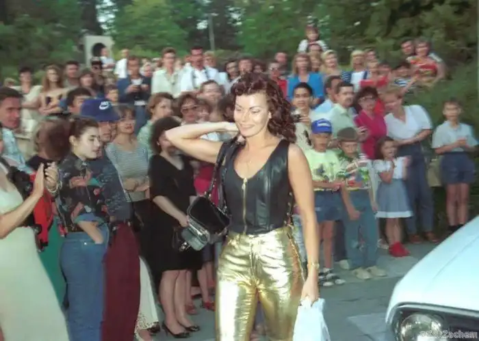 22. Исполнительница хита «Девочка-ночь» Лада Дэнс после концерта в одном из городов России, 1995 год