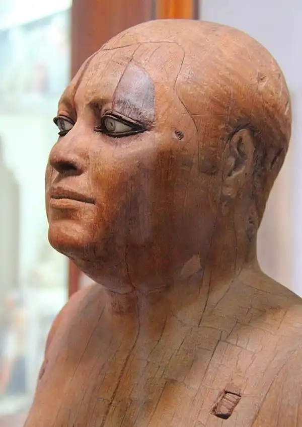 Этой деревянной скульптуре 4 500 лет. Фигура жреца Каапера изготовлена древнеегипетскими мастерами около 2500 г. до н. э. Глаза из меди и горного хрусталя.