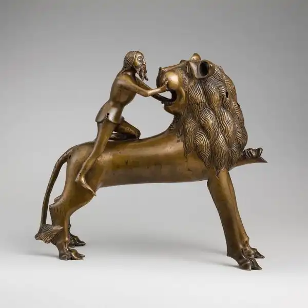 Акваманил (или водолей) — сосуд для омовения рук. Изображает Самсона, разрывающего пасть льву, XIV в.