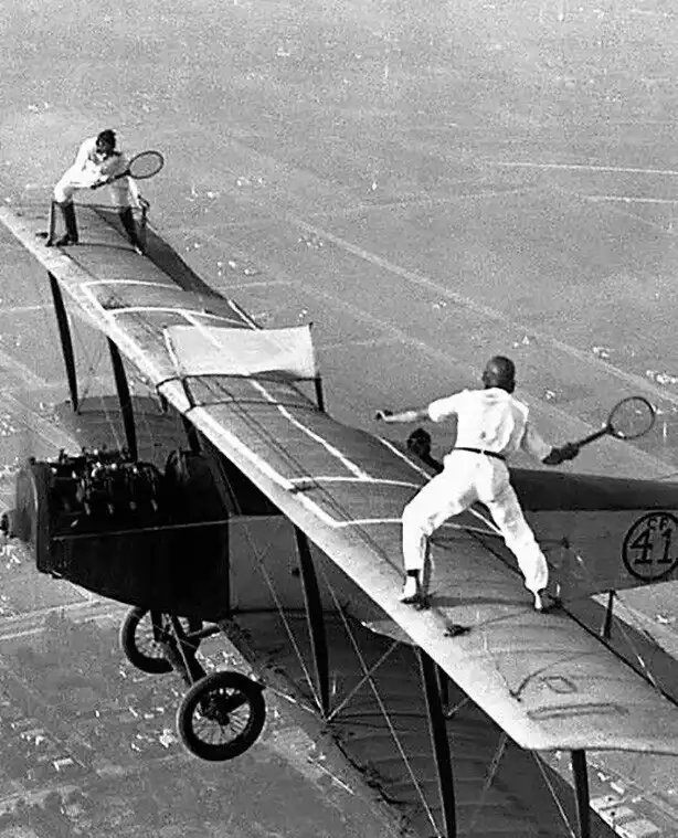 8. Глэдис Рой, которая любит делать необычные вещи с самолетами, еще к тому же любит играть в теннис.