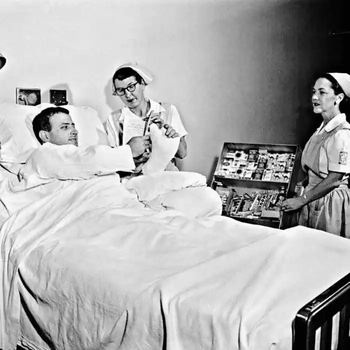 19. В 1950 году в США пациенты могли покупать сигареты, находясь прямо на больничной койке. Они могли курить даже в своих палатах.