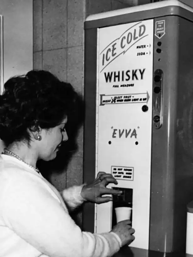 35. Американский автомат разливающий ледяной виски, такие автоматы можно было встретить даже в офисах, 1950 г.